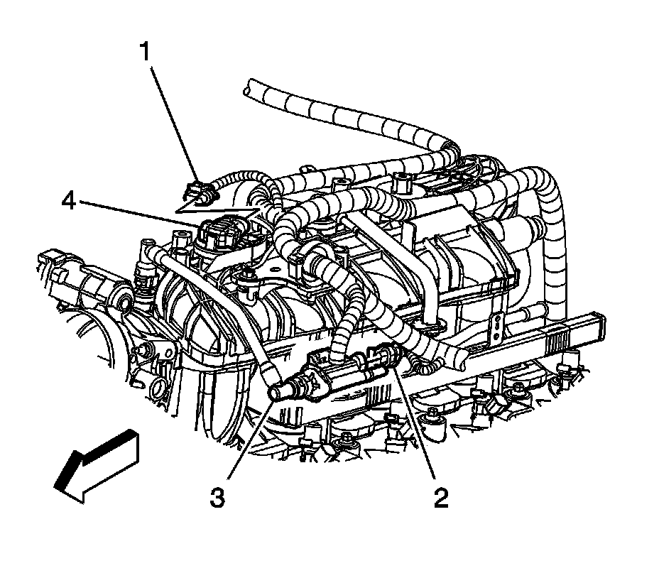 2. Disconnect the engine wiring harness electrical connector (1) from the manifold absolute pressure (MAP) sensor (4).