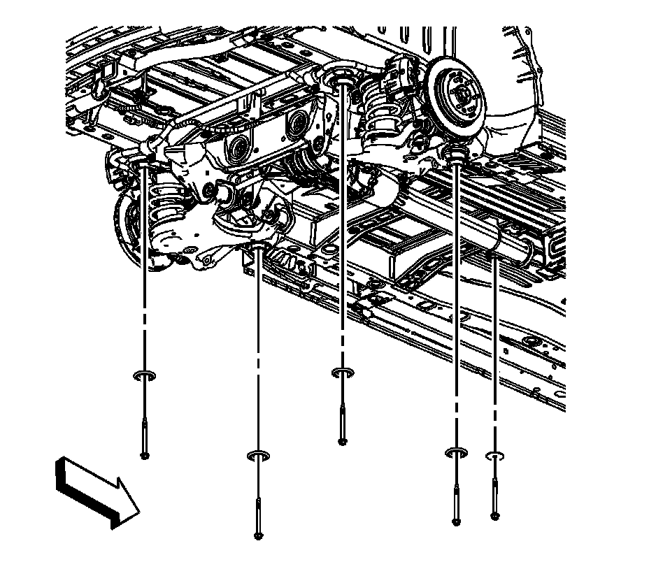 Note:If the suspension crossmember mount bolt does not screw in smoothly, run a tap through the suspension crossmember nut in the body in order to remove foreign material. Ensure the tap does not punch through the underbody.