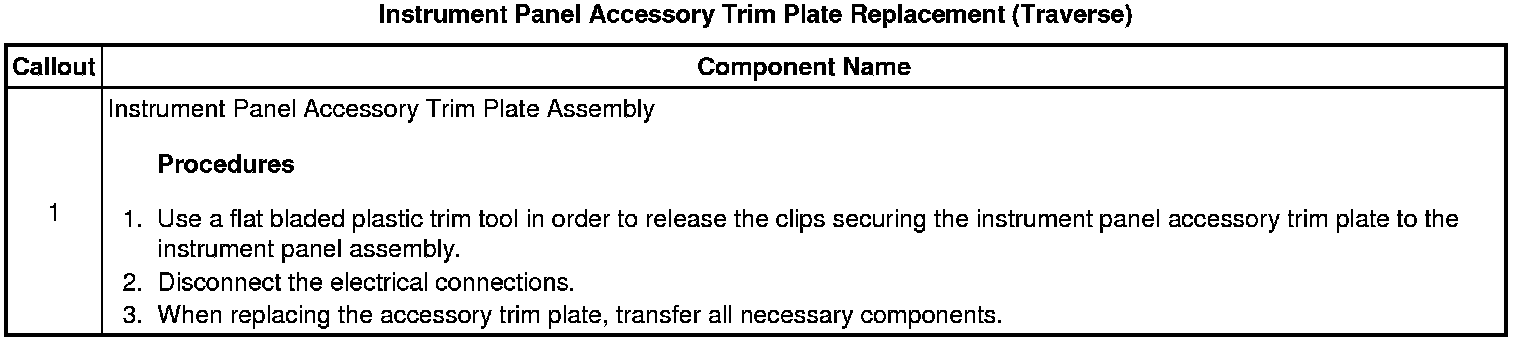 Instrument Panel Accessory Trim Plate Replacement (Traverse)