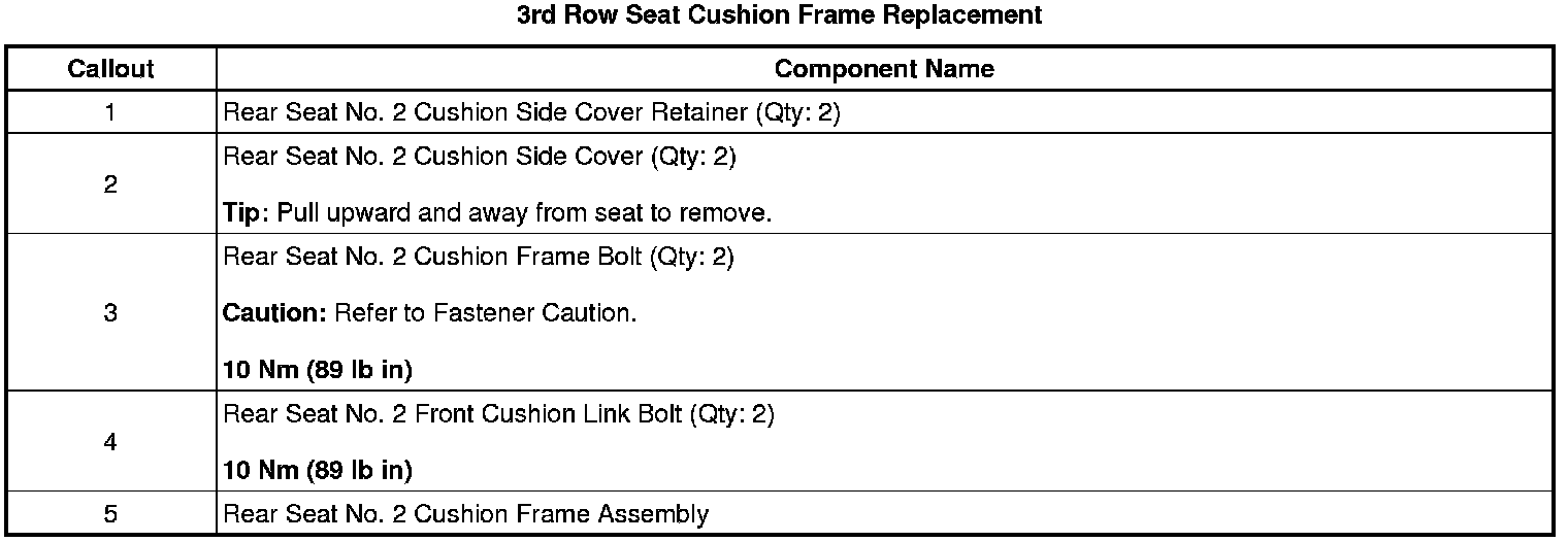 3rd Row Seat Cushion Frame Replacement