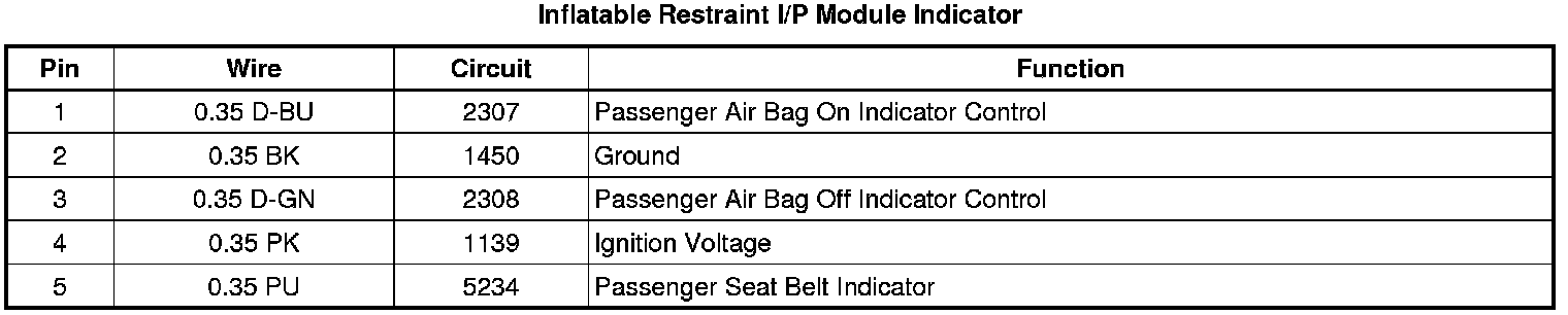 Inflatable Restraint I/P Module Indicator