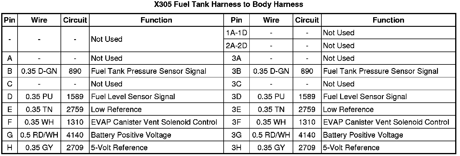 X305 Fuel Tank Harness to Body Harness