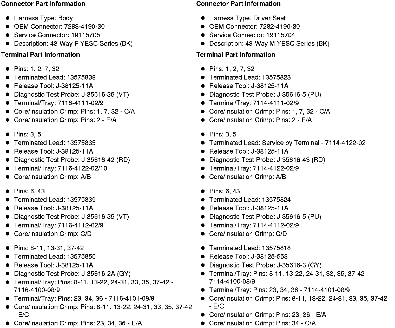 X315 Body Harness to Driver Seat Harness