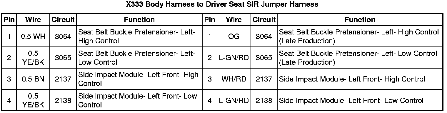 X333 Body Harness to Driver Seat SIR Jumper Harness