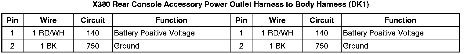 X380 Rear Console Accessory Power Outlet Harness to Body Harness (DK1)