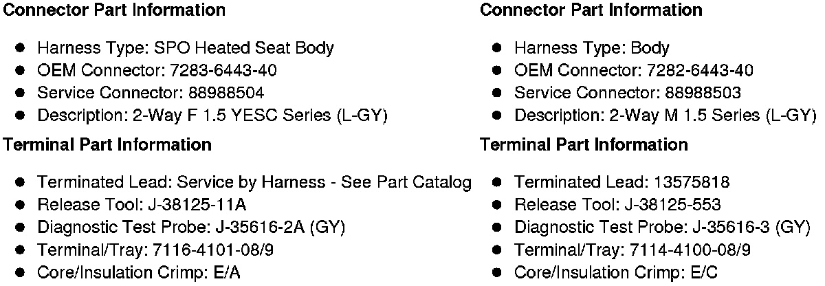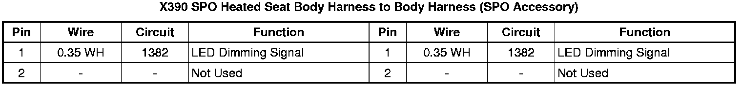 X390 SPO Heated Seat Body Harness to Body Harness (SPO Accessory)