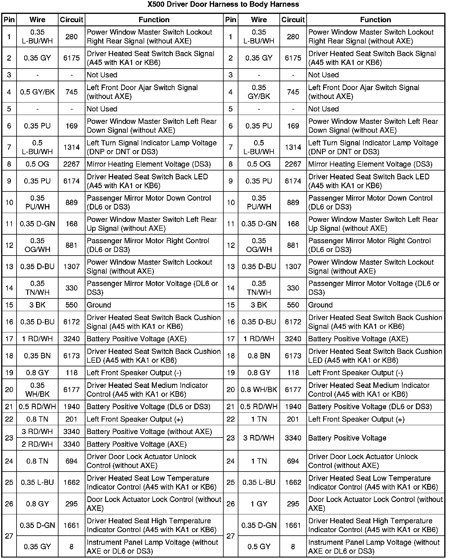 X500 Driver Door Harness to Body Harness
