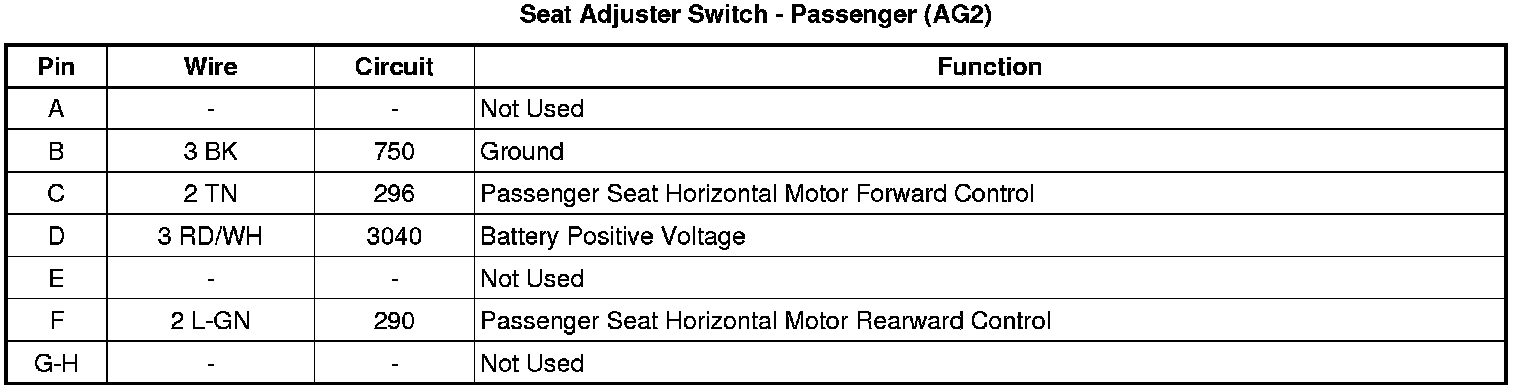 Seat Adjuster Switch - Passenger (AG2)