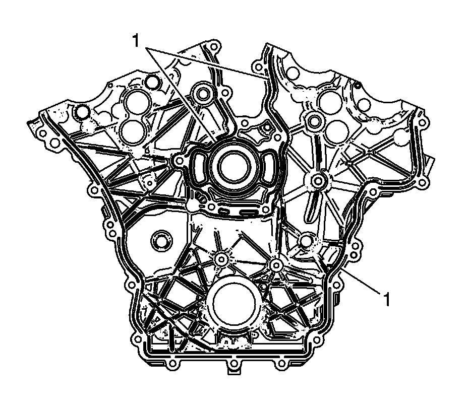 1. Remove any RTV sealant (1) from the engine front cover using EN 28410 - remover.
