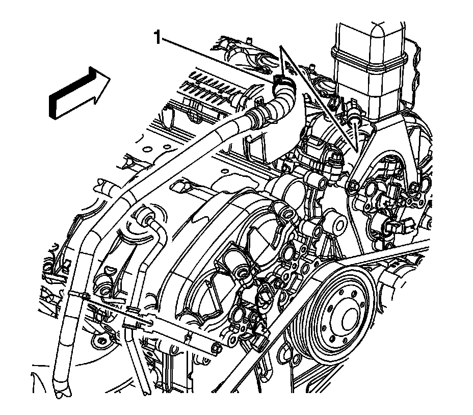 5. Disconnect the power steering fluid reservoir outlet hose (1) from the power steering pump.