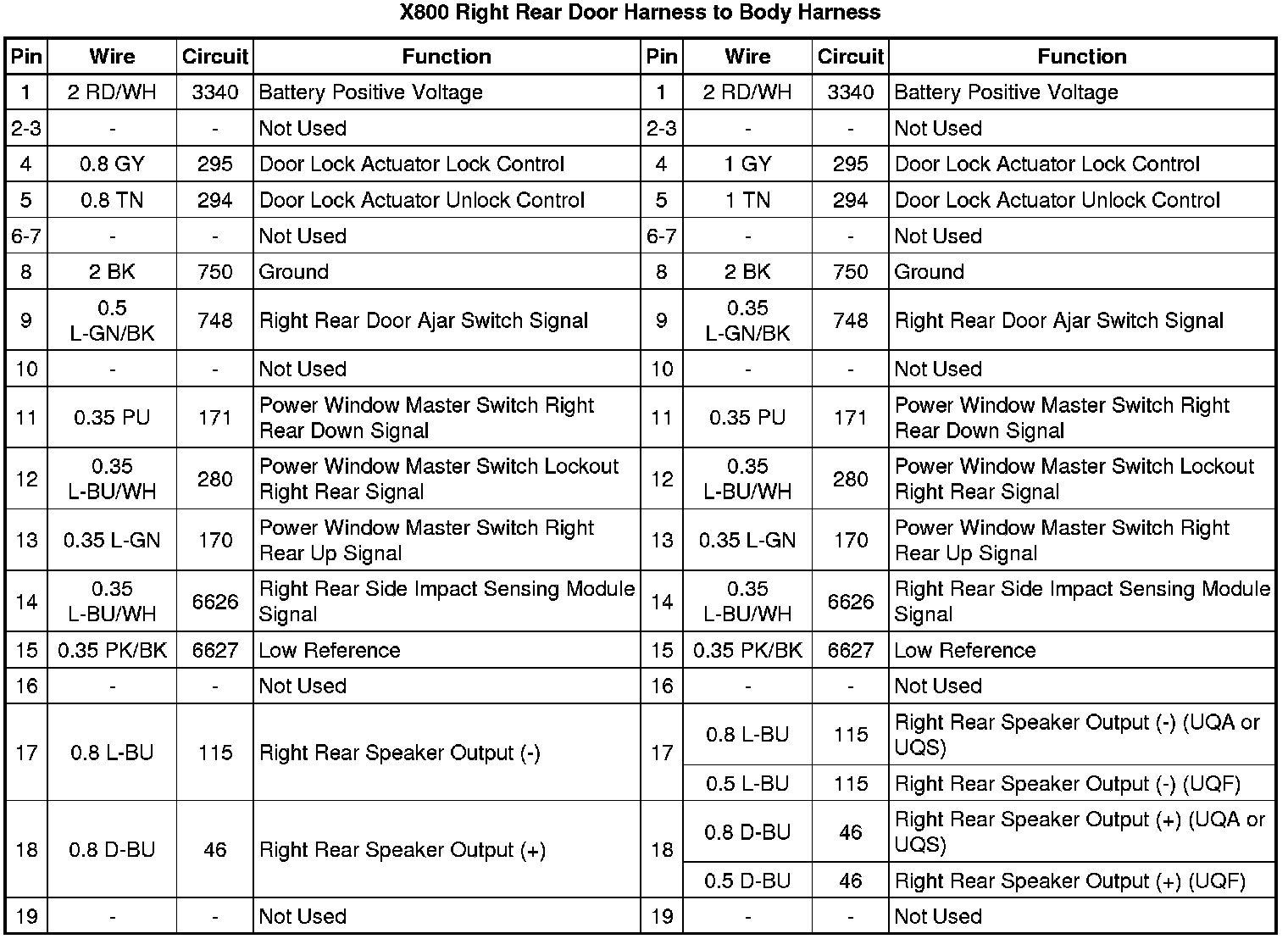 X800 Right Rear Door Harness to Body Harness