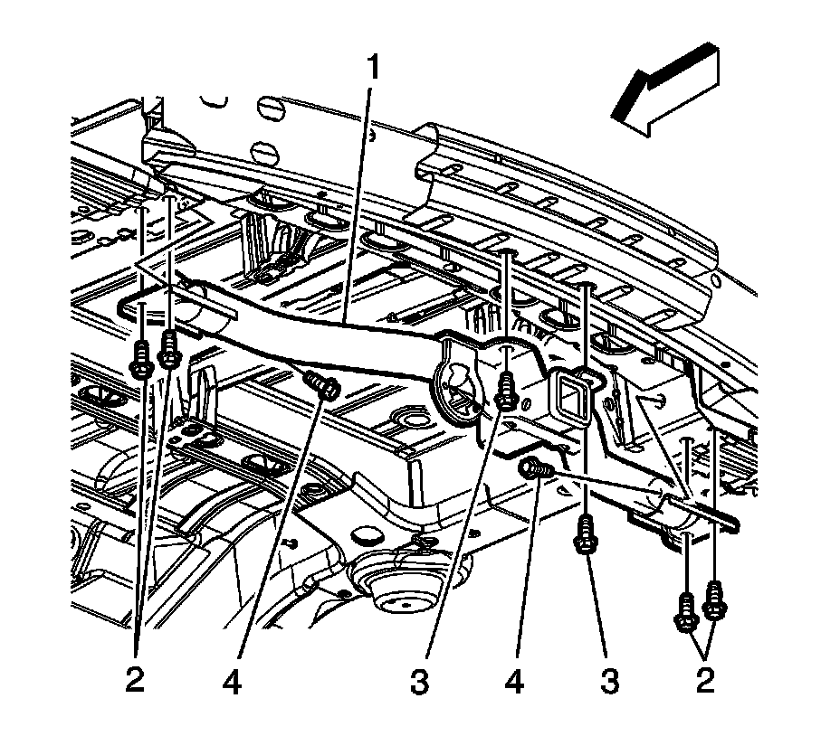 5.Remove the trailer hitch bolts (2-4).