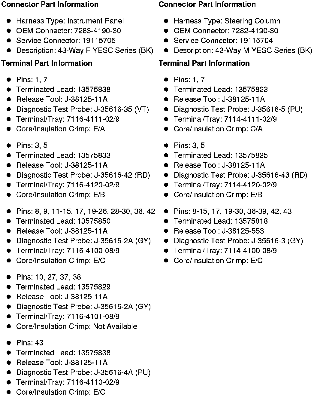 X201 Instrument Panel Harness to Steering Column Harness