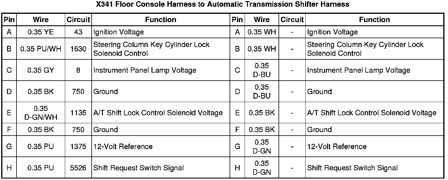 X341 Floor Console Harness to Automatic Transmission Shifter Harness