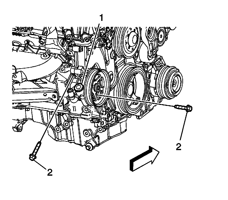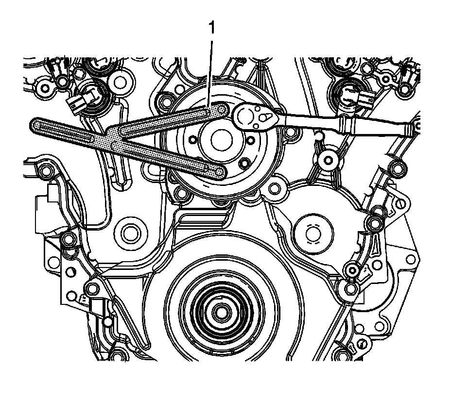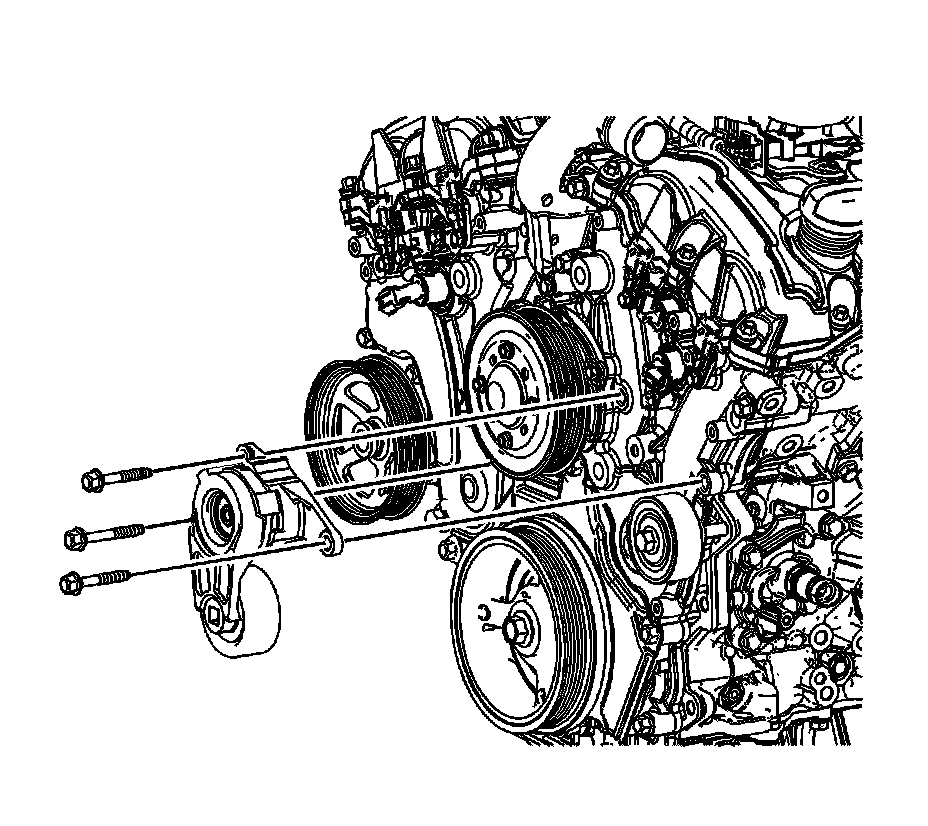 8. Remove the drive belt and drive belt tensioner. Refer to Drive Belt Tensioner Removal 1. Drive Belt Tensioner Removal.