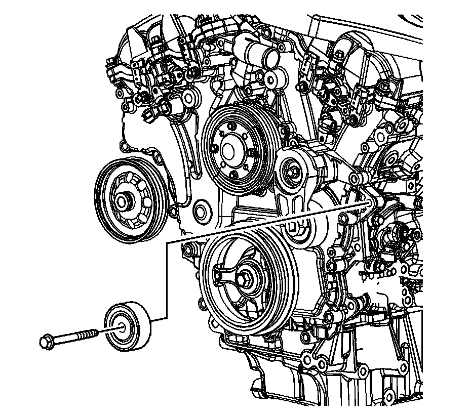 14. Remove the drive belt idler bolt and idler. Refer to Drive Belt Idler Pulley Removal 2. Drive Belt Idler Pulley Removal
