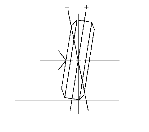 Camber is the tilting of the wheels from the vertical when viewed from the front of the vehicle. When the wheels tilt outward at the top, the camber is positive (+). When the wheel tilts inward at the top, the camber is negative (-). The amount of tilt is measured in degrees from the vertical. Camber settings influence the directional control and the tire wear.