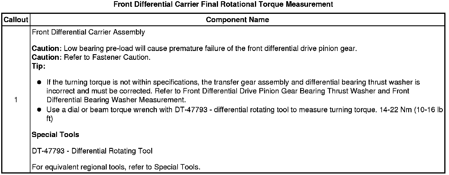 47. Front Differential Carrier Final Rotational Torque Measurement