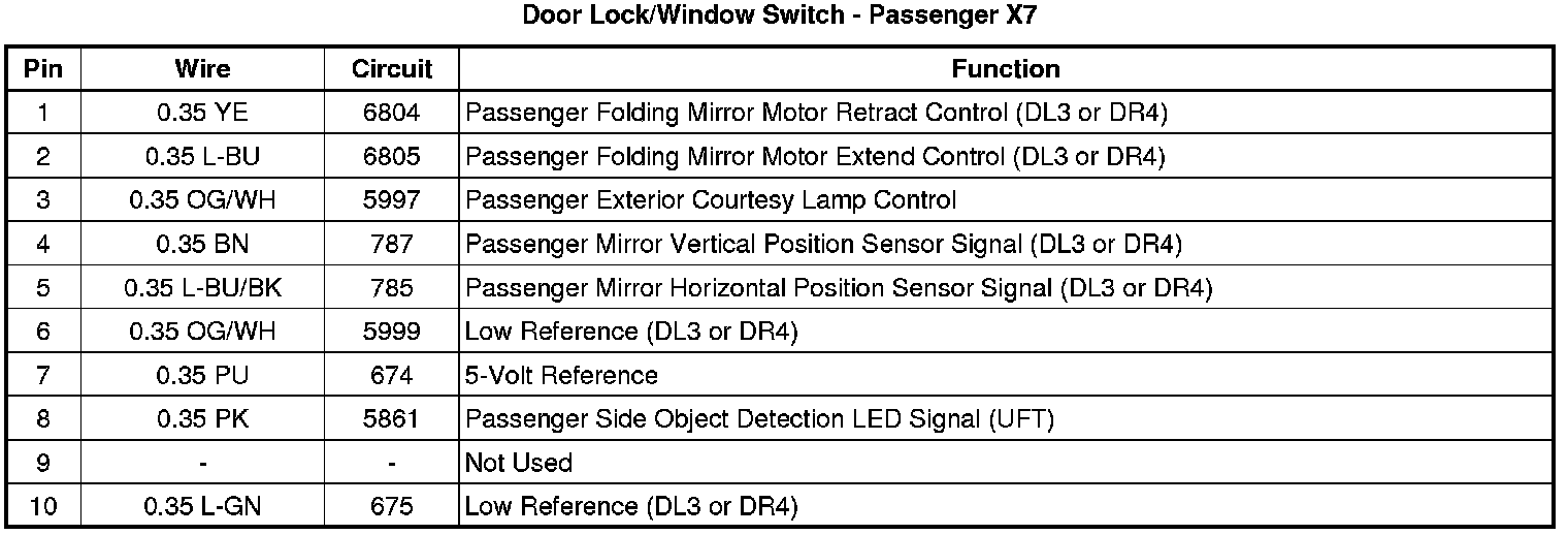 Door Lock/Window Switch - Passenger X7