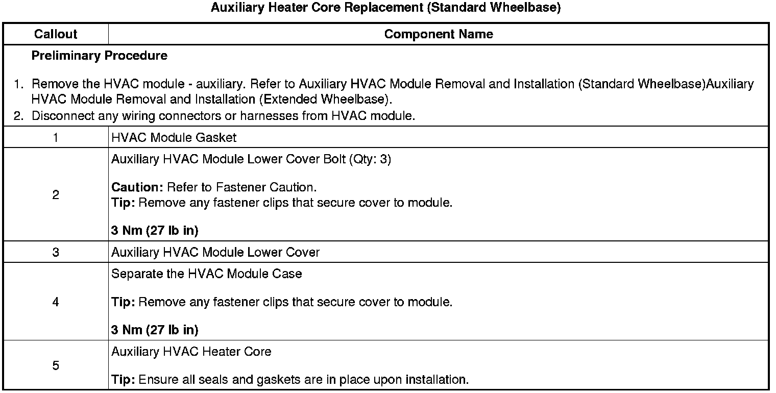 Auxiliary Heater Core Replacement (Standard Wheelbase)