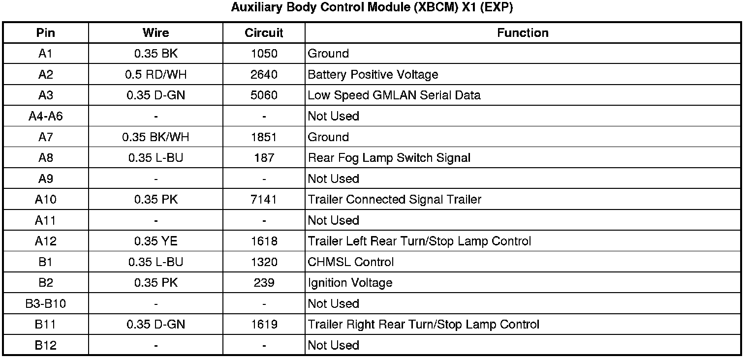 Auxiliary Body Control Module (XBCM) X1 (EXP)