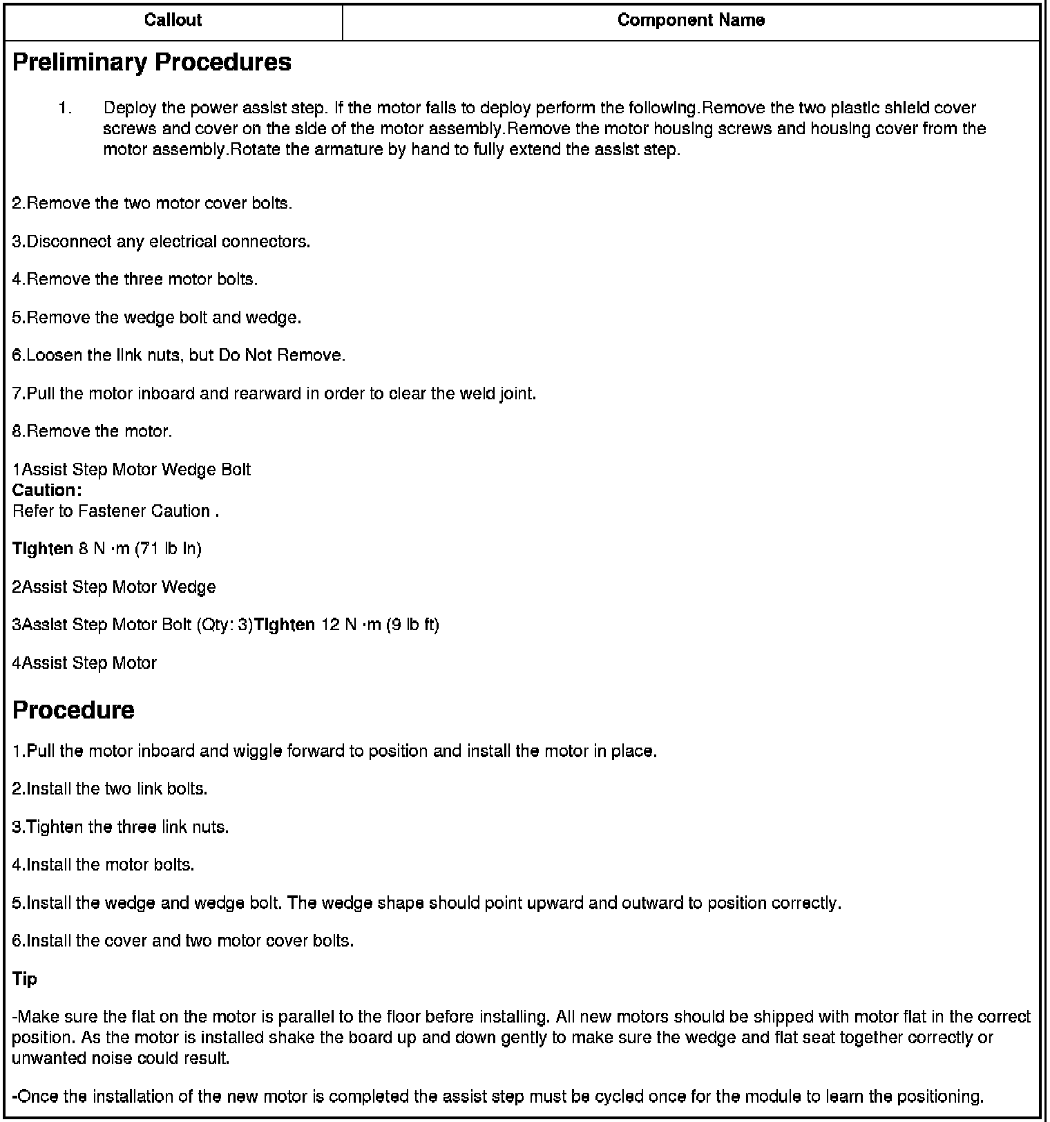 3Assist Step Motor Bolt (Qty: 3)Tighten 12 N �m (9 lb ft)