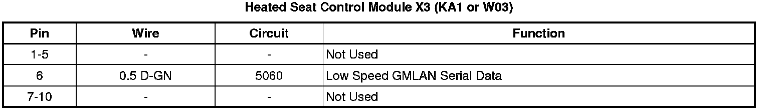 Heated Seat Control Module X3 (KA1 or W03)