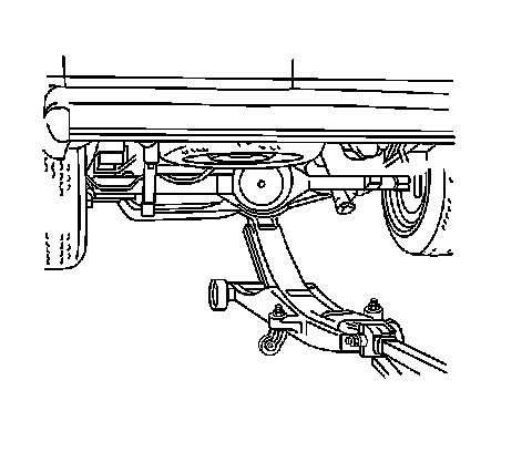 Position the jack under the rear spring hanger.