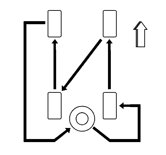 8. For vehicles with dual rear wheels, including the spare tire, rotate the tires as shown.