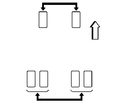 4. For vehicles with single rear tires (4 tires), rotate the tires as shown.