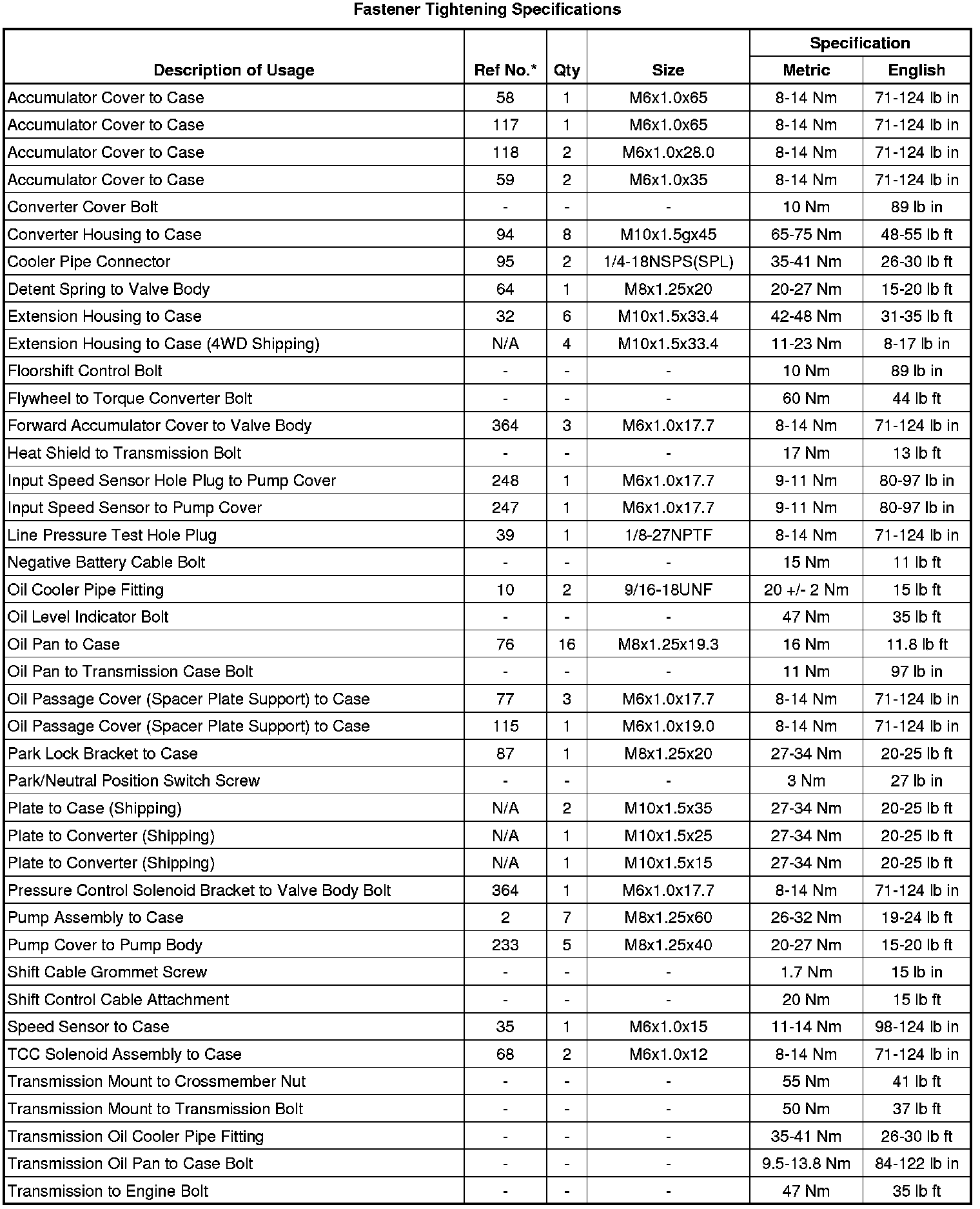 Fastener Tightening Specifications
