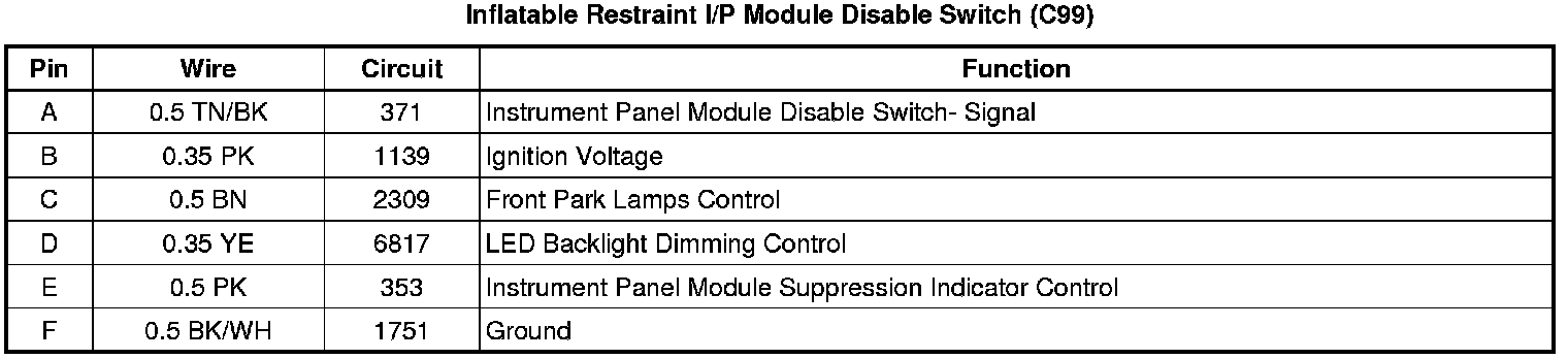 Inflatable Restraint I/P Module Disable Switch (C99)