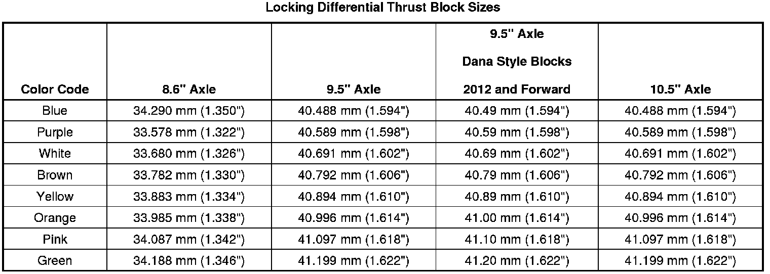 Locking Differential Thrust Block Sizes