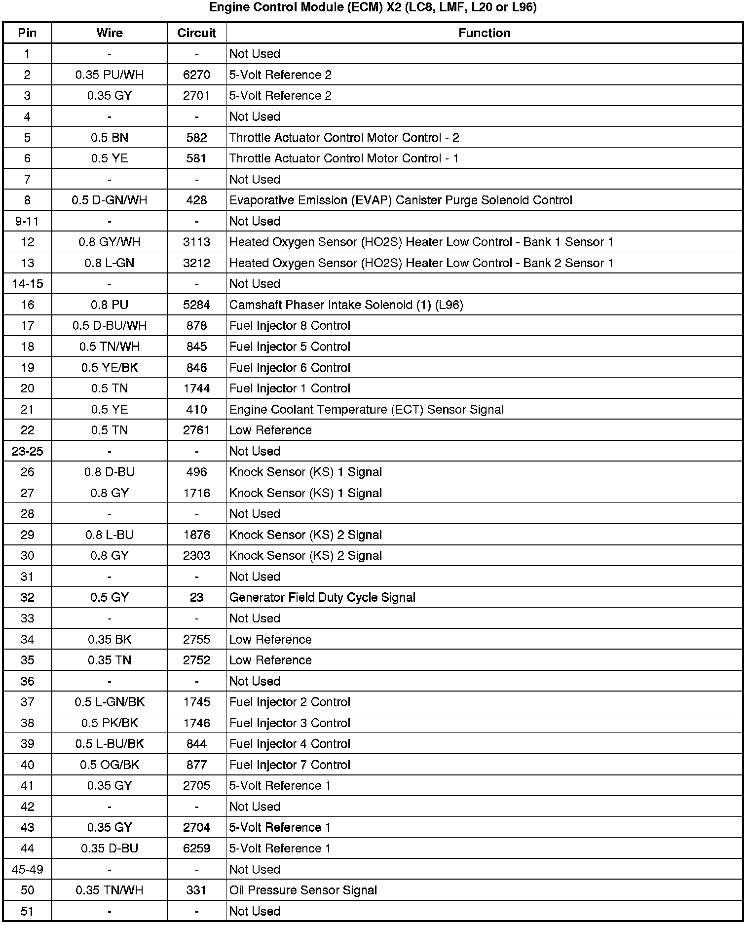 Engine Control Module (ECM) X2 (LC8, LMF, L20 or L96)