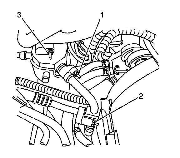 2. Remove the coolant reservoir. Refer to Coolant Recovery Reservoir Replacement Coolant Recovery Reservoir Replacement.