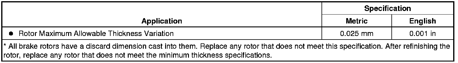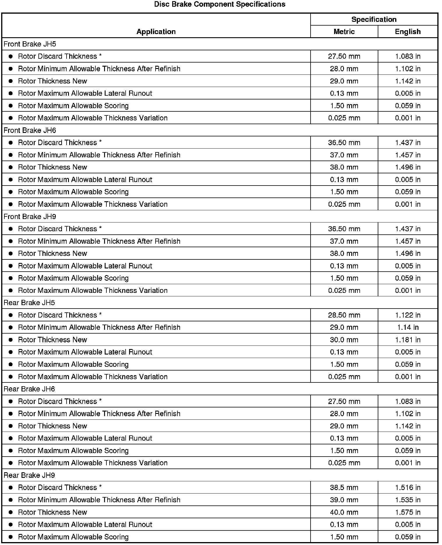 Disc Brake Component Specifications