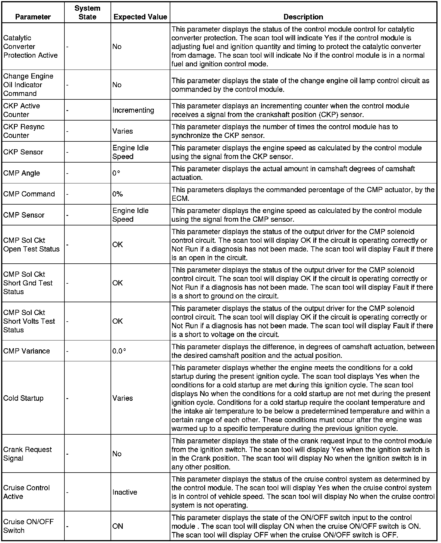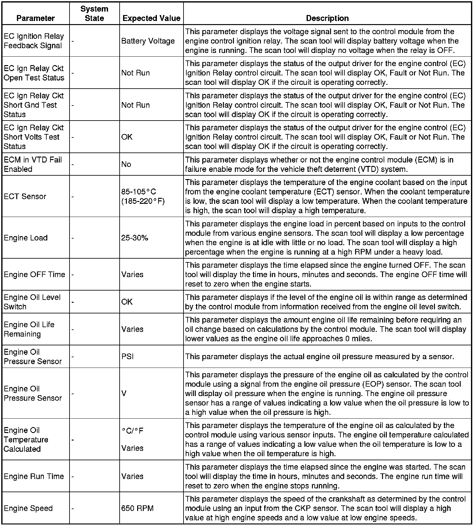 The Engine Control Module Scan Tool Data List contains all engine-related parameters that are available on the scan tool. The list is arranged in alphabetical order. A given parameter may appear in any one of the data lists, and in some cases may appear more than once, or in more than one data list in order to group certain related parameters together.