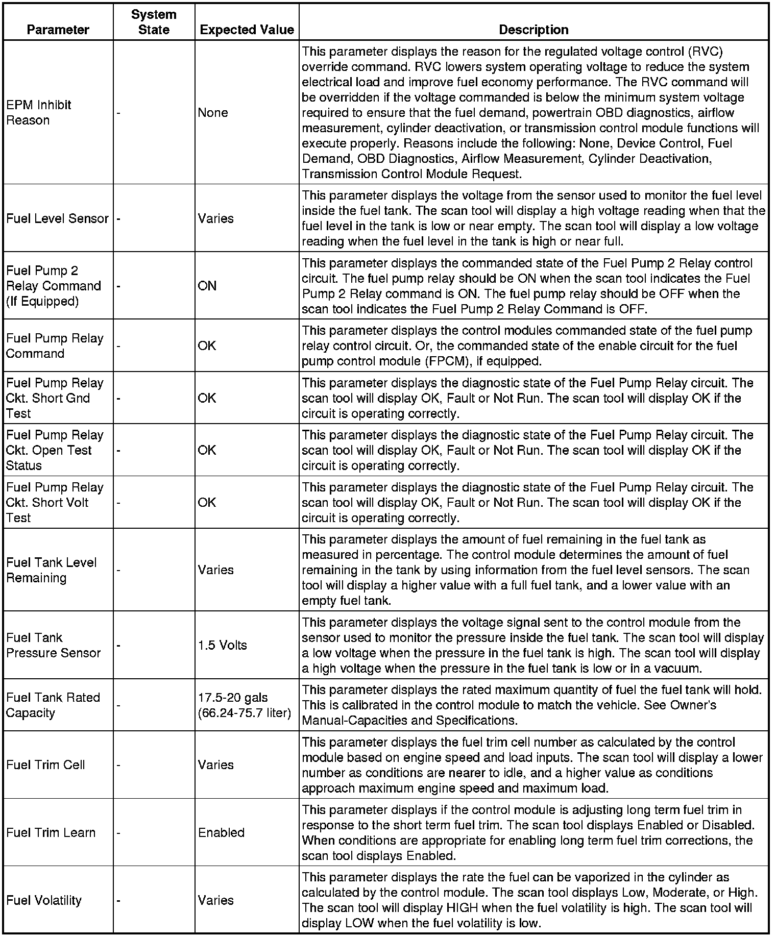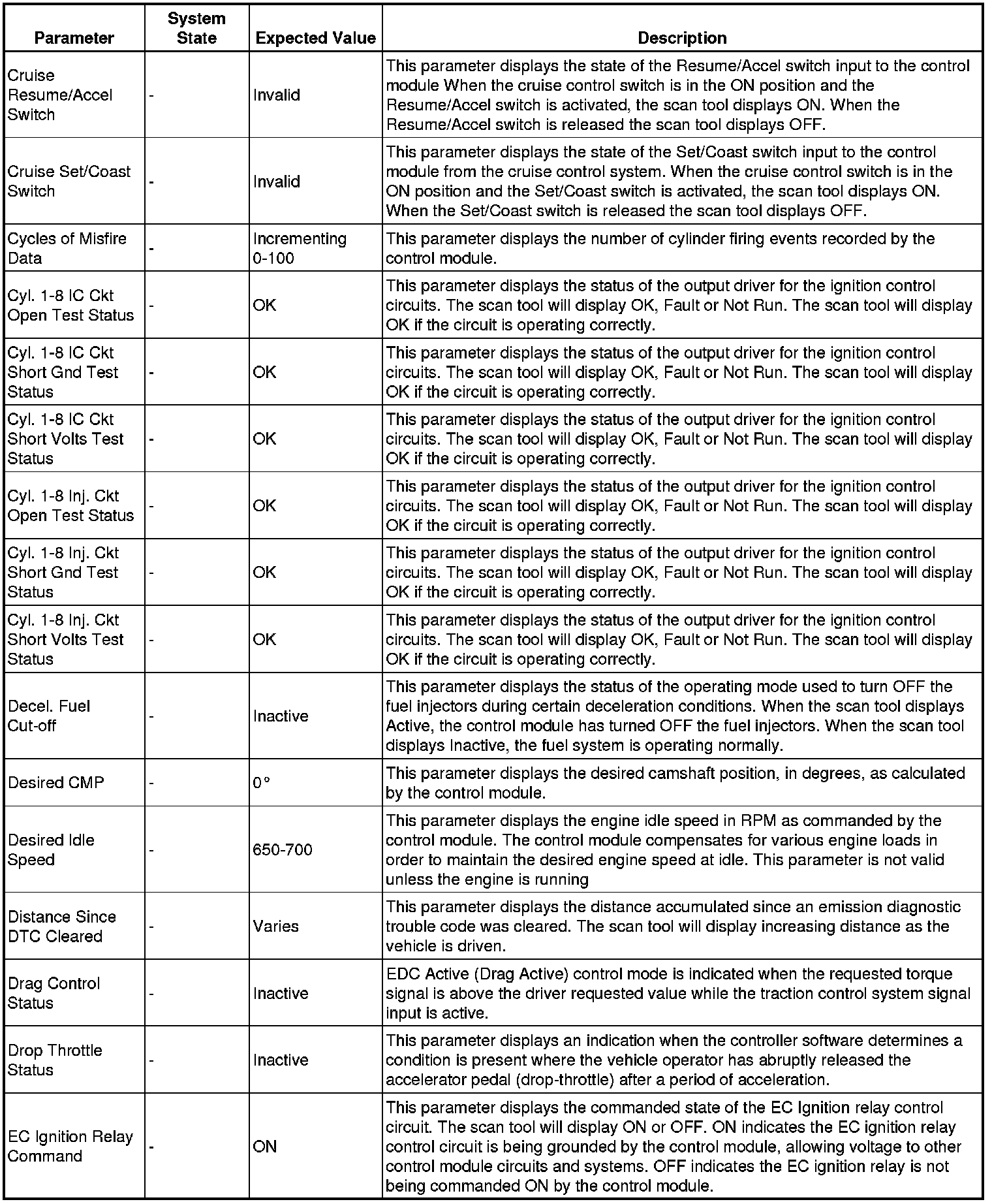 The scan tool values from a properly running engine may be used for comparison with the engine you are diagnosing. The engine scan tool data list represents values that would be seen on a normally running engine.