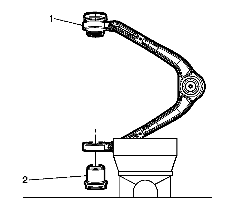 3. Using the appropriate tools, remove the upper control arm bushings (2).