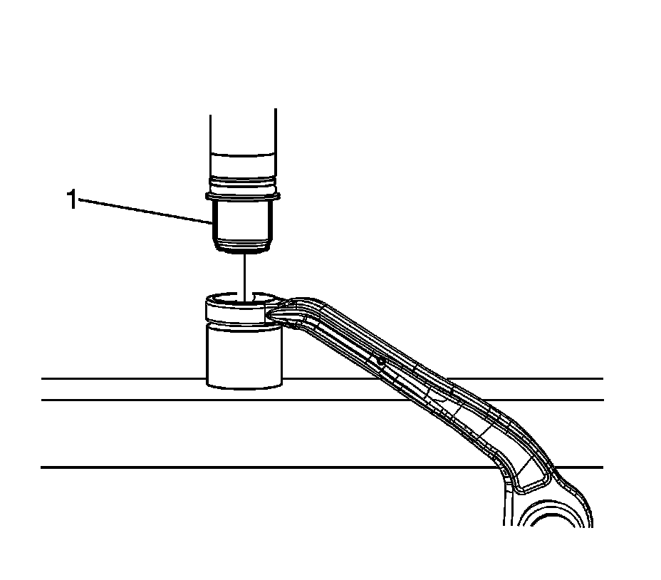 1. Using the hydraulic press, install the upper control arm bushings (1).