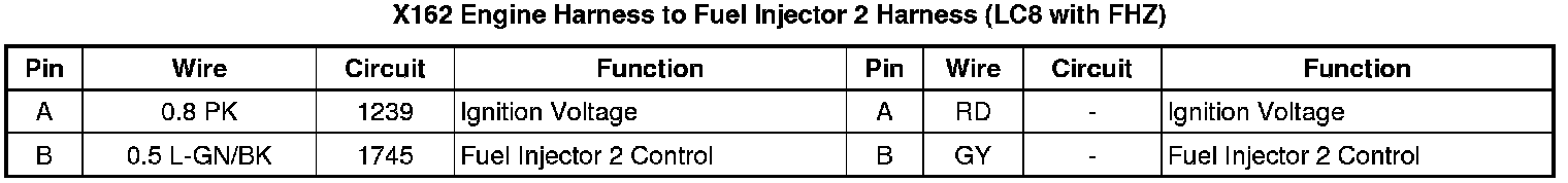 X162 Engine Harness to Fuel Injector 2 Harness (LC8 with FHZ)