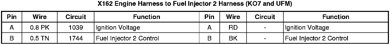 X162 Engine Harness to Fuel Injector 2 Harness (KO7 and UFM)