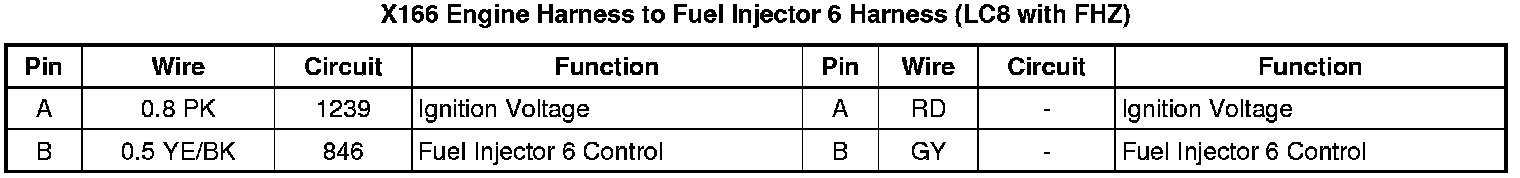 X166 Engine Harness to Fuel Injector 6 Harness (LC8 with FHZ)