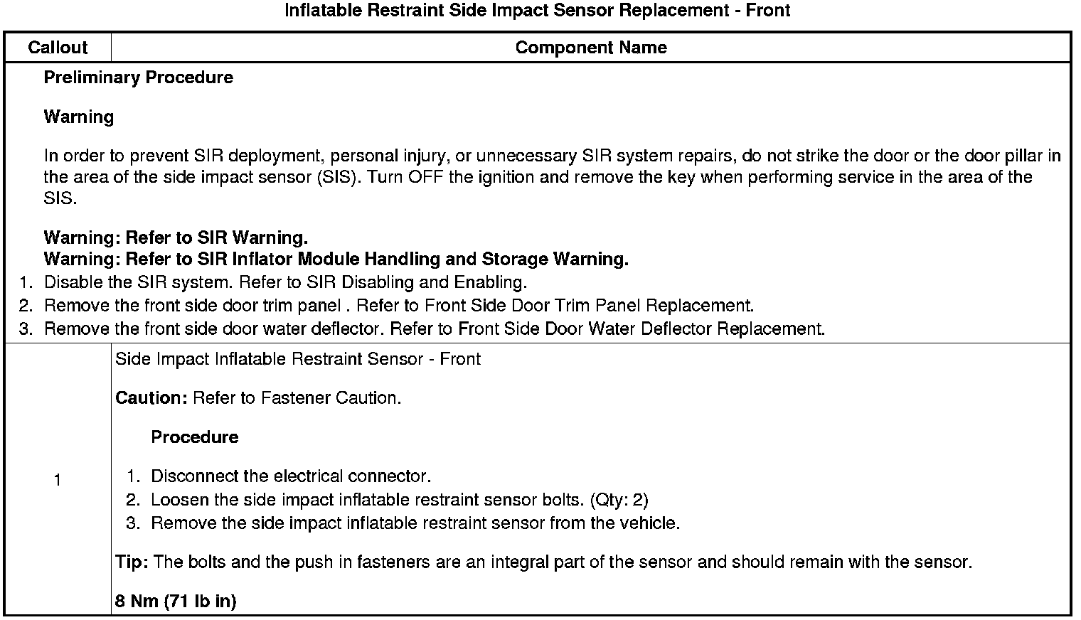 Inflatable Restraint Side Impact Sensor Replacement - Front