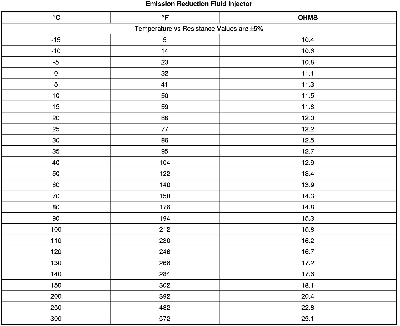 Temperature Versus Resistance (Emission Reduction Fluid Injector)