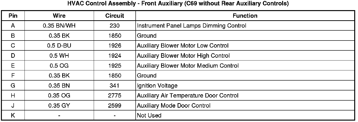 HVAC Control Assembly - Front Auxiliary (C69 without Rear Auxiliary Controls)