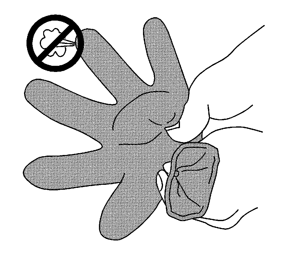 2. Inflate glove and seal opening. Pinch the opening closed tightly to prevent any air loss.