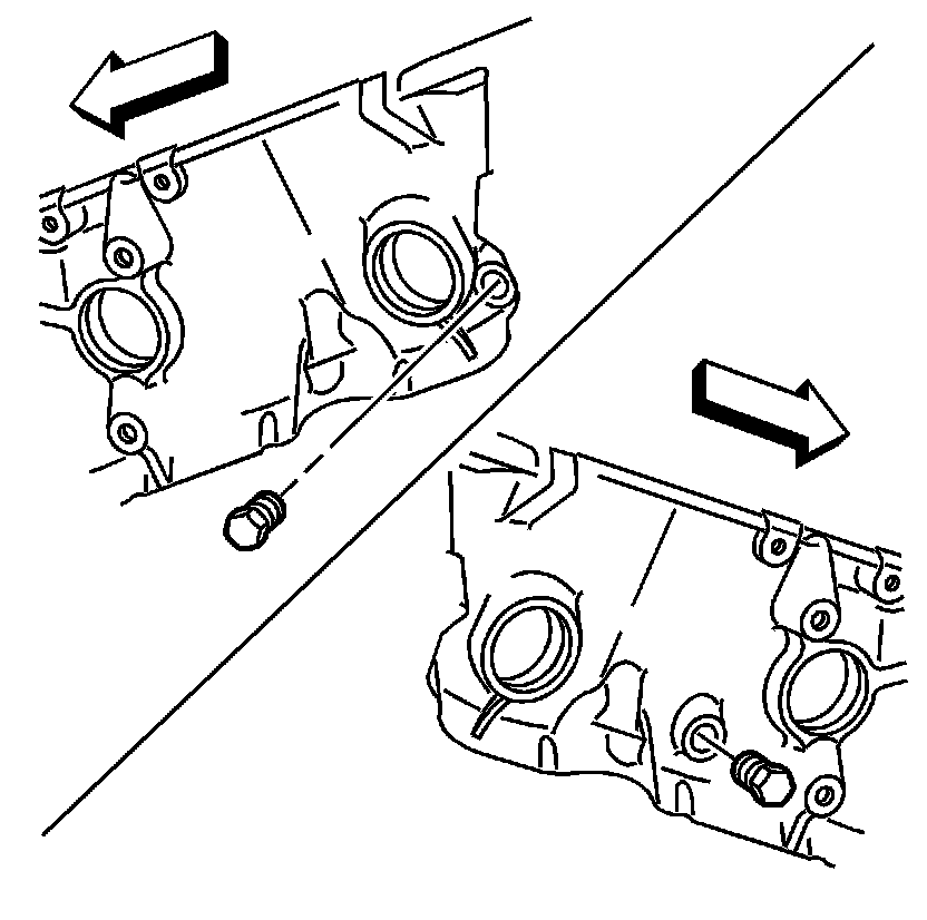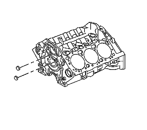 2. Apply sealant GM P/N 12346004 (Canadian P/N 10953480) or equivalent, to the outside diameter of the NEW front engine oil gallery plugs.