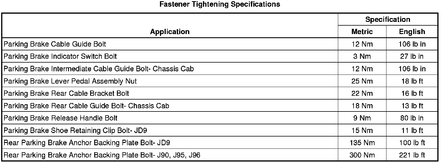 Parking Brake System: Specifications