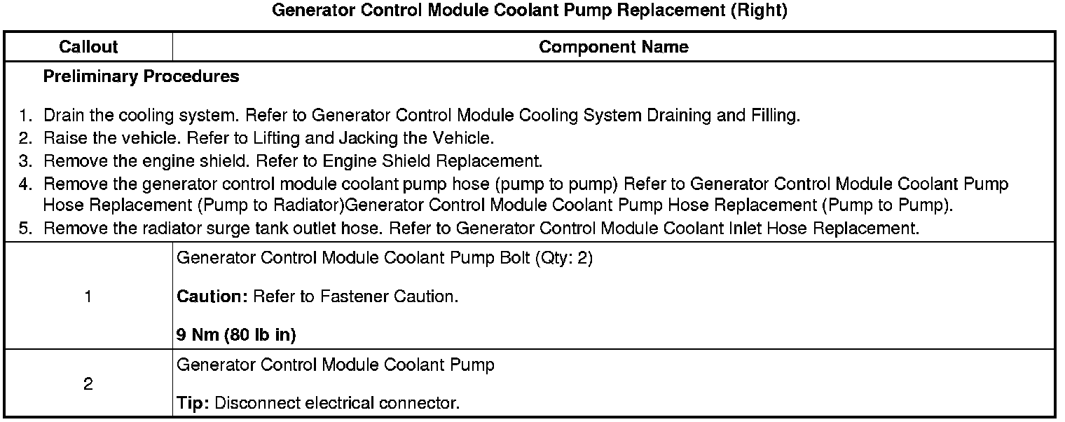 Generator Control Module Coolant Pump Replacement (Right)
